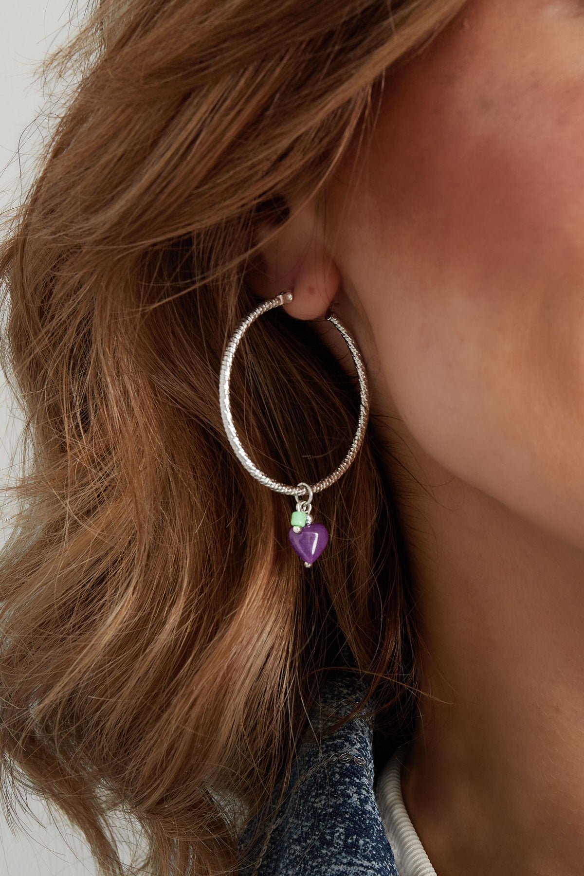 Oorringen met natuursteen en hart